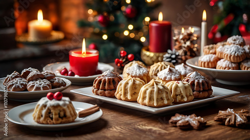 christmas, decoration, food, candle, holiday, cake, christmas, table, cookie, celebration, sweet, dessert, winter, ornament, baked, gold, gingerbread, season, closeup, spa, cinnamon, cookie, ball, festive, gold