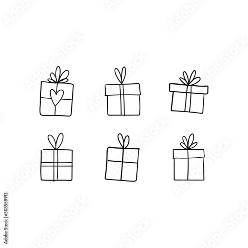 party, vignetting, illustration, doodle, vector, holiday, box, icon, birthday, present, christmas, ribbon, package, surprise, symbol, design, line, valentine, set, celebration, collection, shopping, drawing, gift, anniversary, sale, christmas, bow, isolated, love