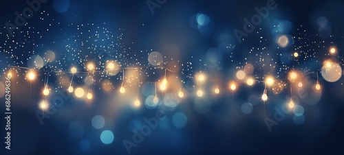 Christmas holiday and Happy New Year decoration and illumination concept. Garland bokeh lights over blue background.