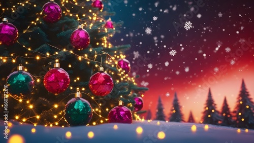 Christmas Holiday Background with Glowing Tree and Snowflakes