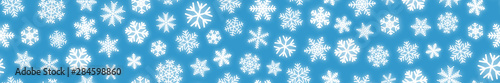 Christmas horizontal seamless banner of white snowflakes on light blue background