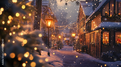 Christmas lanterns lighting up a snowy village street (3)
