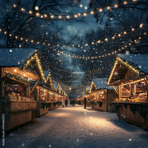 christmas, market, festive, stall, holiday, light, night, wooden, hut, winter, fair, decoration, garland, glowing, seasonal, shopping, cosy, atmosphere, celebration, illuminated, street, city, travel, urban