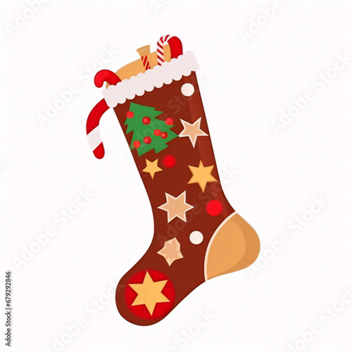 christmas, christmas, decoration, holiday, stocking, gift, sock, santa, celebration, winter, boot, tree, red, vector, present, claus, illustration, season, december, new, santa, toy, year, card