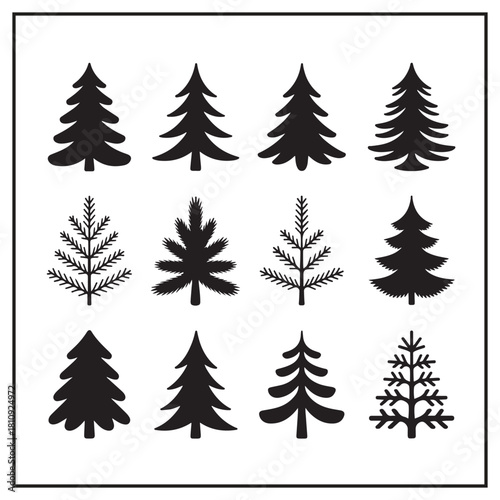 christmas tree, xmas tree, winter tree, evergreen tree, pine tree, green tree, set, illustration