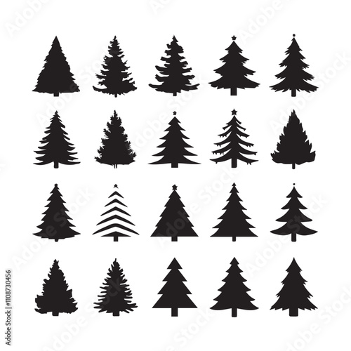 Christmas tree grows silhouette on a white background isolated