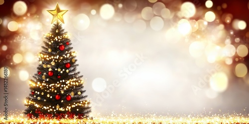 background, bauble, bright, card, christmas, copper, copy, cream, decor, decoration, design, digital, elegant, festive, glistering, glowing, gold, greeting, holiday, light, luxury, merry, message, new, ornament, red, season, shiny, social, space, sparkle, star, text, traditional, tree, christmas, year