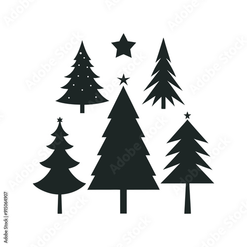 Christmas Tree Silhouette Set Festive Tree Icons for Holiday Designs, Black and White Christmas Tree Silhouettes