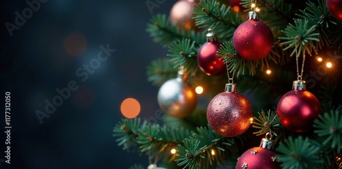 Christmas tree with colorful ornaments and lights, sparkly, twinkling, ornaments