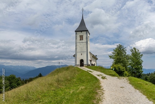 church, hill, greenery, cloudy sky, landscape, architecture, nature, scenic, countryside, rural, building, summer, travel, religion, spirituality, peaceful, serene, outdoors, tour tourism, landmark, europa, idylli, tranquil, destination, journey, pilgrimage, heritage, cultural