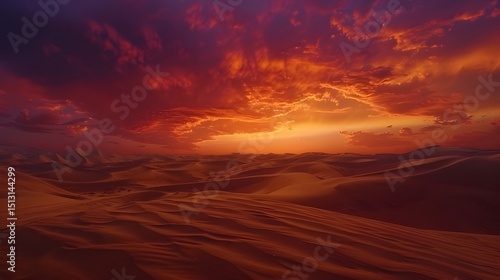 Cinematic View of Sunset over Rippling Sand Dunes in the Desert