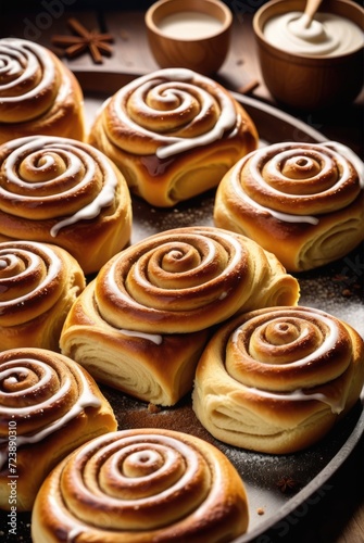 Cinnamon rolls, similar to the Swedish kanelbulle, made with buttery dough and flavored by ai generated