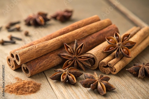 Cinnamon Sticks and Star Anise Aromatic Spices