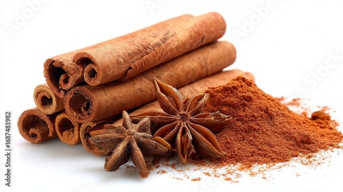 Cinnamon sticks star anise and ground cinnamon spice blend