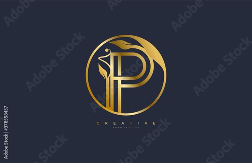 Circle P letter linear shape luxury flourishes ornament golden logotype