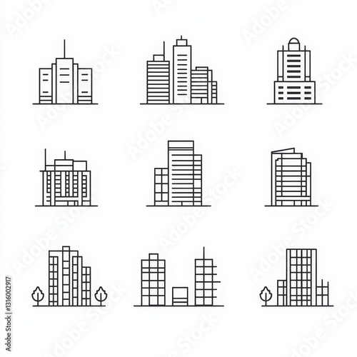 group, icon, graphic, element, city landscape, outline, construction, line, symbol, structure, skyscraper, linear, collection, isolated, signs, city, black, web, simple, plain, white, build, exterior, shape, object, width, residential, minimalism, architecture, abstract, district, illustration, town, home, estate, urban, office, slim, set, street, thin, stroke, downtown, skyline, modern, business, style, house