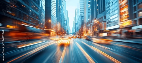 City downtown road traffic with fast defocused effect Generative AI technology.