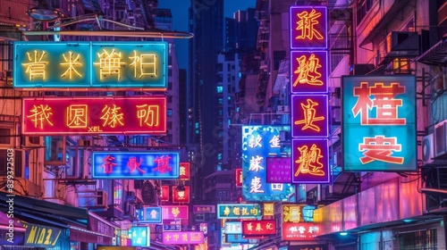 City streets adorned with vibrant neon signs, their colorful glow casting an electrifying atmosphere against the urban backdrop