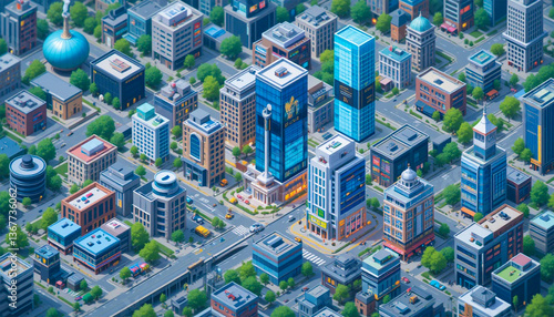 Cityscape With Modern Buildings And Green Parks Under Clear Sky For Urban Scenic Design Background