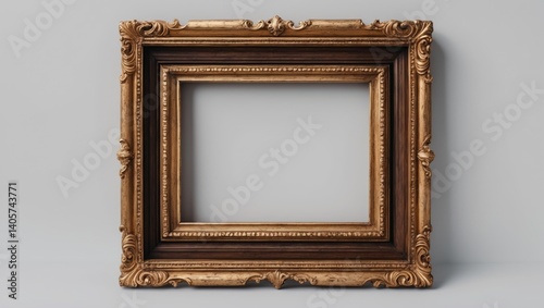 Classic Antique Gold Brown Wooden Mockup Frame for Canvas, Mirror, or Photo on White