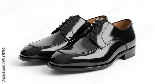 Classic black dress shoes with polished finish, clean and white background