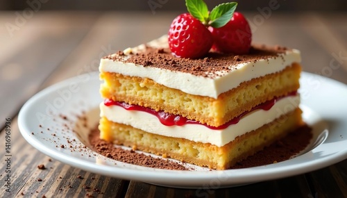 Classic Italian dessert; layers of coffee-soaked ladyfingers, mascarpone cream , cream, confectionery, creamy