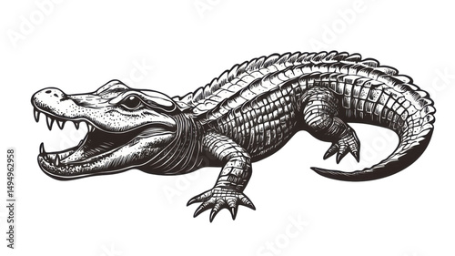 Classic Vintage Illustration of Alligator with Detailed Engraving Style Isolated on White Background