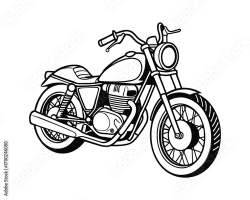 Classic Vintage Motorcycle Line Art Illustration with Bold Design