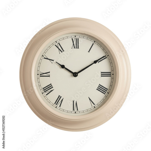 Classic wall clock with Roman numerals showcasing time in a minimalist setting