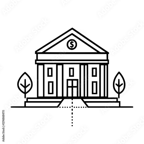 Classical Bank Building Icon Representing Finance, Investment, and Economic Institutions