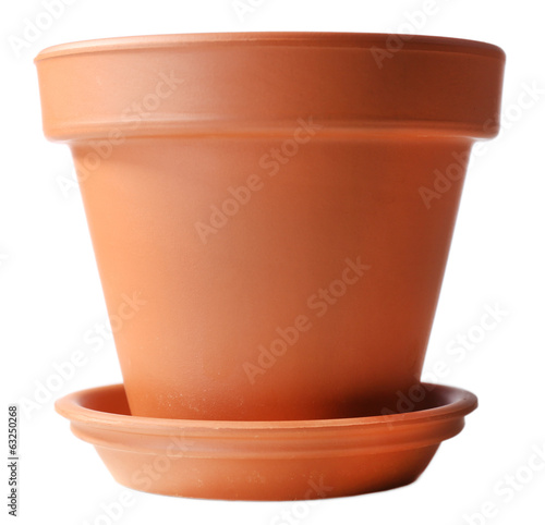 Clay flower pot, isolated on white