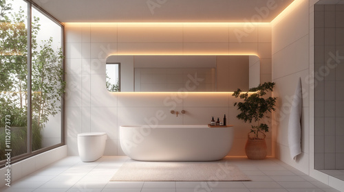 Clean and modern bathroom with white tiles an