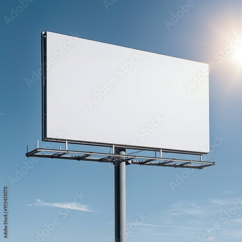 Clean and simple billboard design elevated on a steel framework, highlighted by the bright sunlight, perfect for outdoor ads