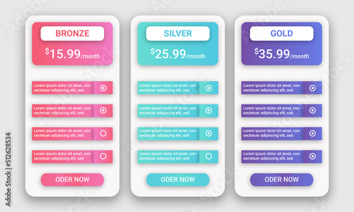 Clean simple pricing table template, Creative vector illustration of business plans, Art design modern banner list, web comparison pricing table template for website