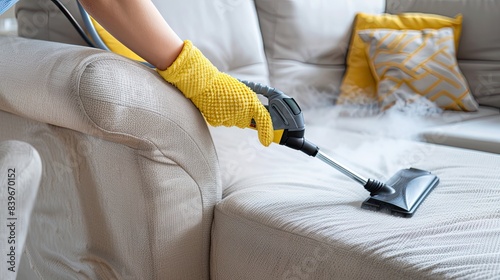 cleaning, service, men at work, removing, stain, upholster, sofa, steam, cleaner, upholstery, couch, furniture, home, house, professional, clean, dirt, grime, dust, hygiene, sanitation, domestic, housework, cleanliness, fresh, spotless, tidy, closeup, hand, yellow, glove