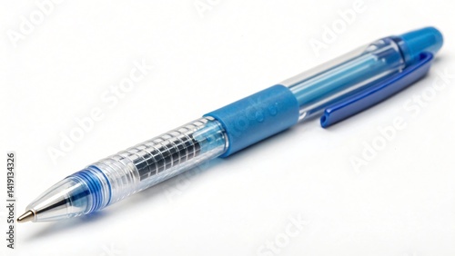 Clear Blue Gel Pen on White Background Stock Photo for Design Projects