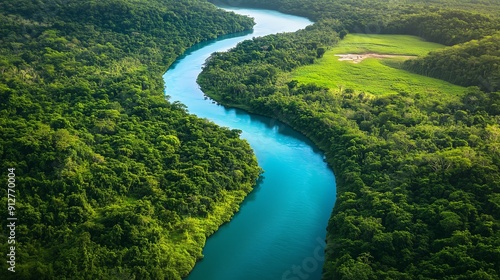 Clear, Flowing Rivers and Streams Winding Through Lush Greenery, Highlighting the Contrast Between Blue Water and Green Surroundings