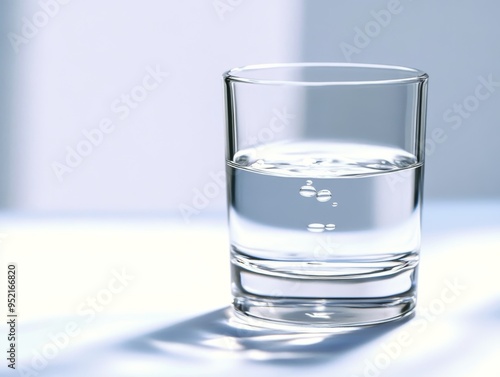 Clear Glass Filled with Pure Water, Symbol of Refreshment and Purity, Featuring Tiny Air Bubbles Rising to the Surface