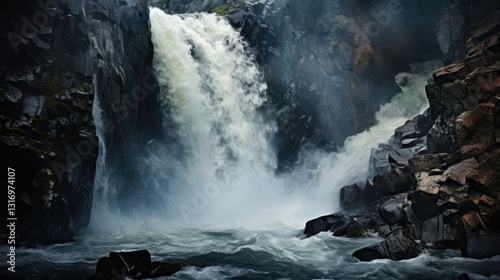 cliff, earth, water, colours, illustration, fall, cascade, rock, white, contrast, texture, power, beauty, landscape, nature, majestic, dramatic, display, carving, flow, stream, river, erosion, geology, scenery, outdoors, wilderness, environment, natural, force, motion, spray, mist, calmness