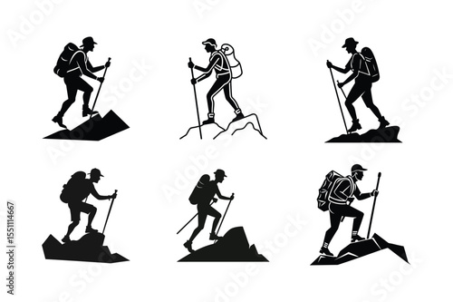 Climber Silhouettes Vector Set, Hiking vector art isolated on white background
