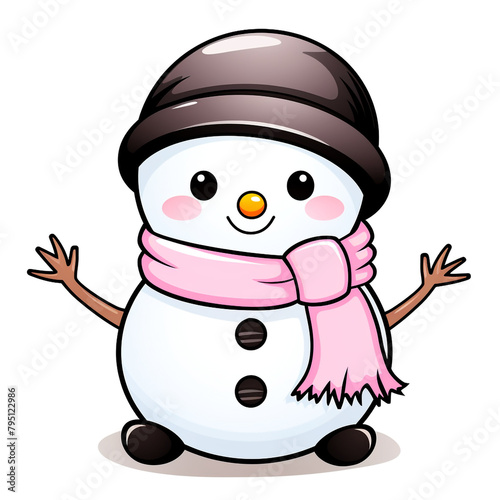clipart kawaii, cute snowman , soft pastel colour scheme, white background сreated with Generative Ai