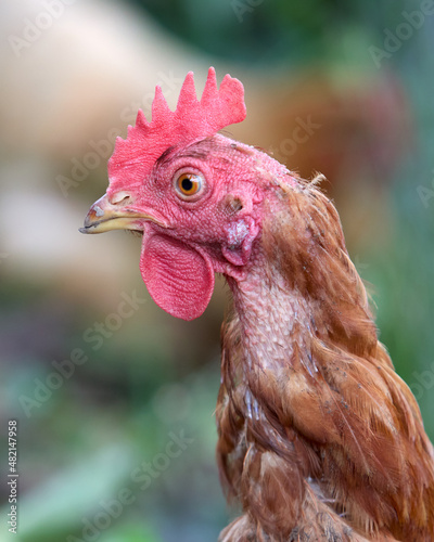 chicken, bird, hen, farm, isolated, poultry, female, beak, head, agriculture, fowl, red, brown, feather, white, eye, farming, feather, domestic, nature, comb, chick, portrait, closeup