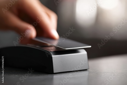 Close up of a credit card being inserted into a sleek card reader, retail concept