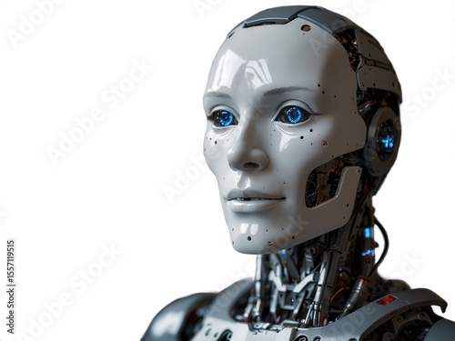 robot, android, ai, artificial intelligence, cyborg, android, technology, future, futuristic, machine, automation, science, science fiction, science fiction, innovation, digital, computing, engineering, electronic, circuitry, wire, metal, face, eye, blue eye, portrait, closeup, black background, head, neck, shoulder, white, grey, chrome, synthetic, advanced, design, concept, artwork, illustration, rendering, computer-generated, digital artwork, artificial, close, with
