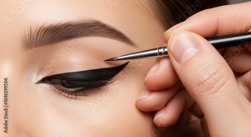Close up of a person applying black eyeliner to their eye with a brush for a dramatic look effect