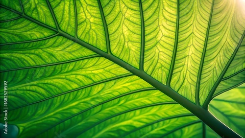 Close up of backlit green leaf veins showing intricate natural pattern image photo