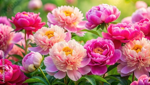 Close up of beautiful colorful peony flowers in full bloom, perfect for a natural summery background or pink peony bouquet