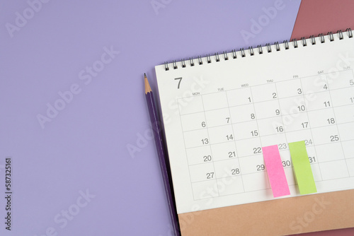 close up of calendar on the colorful table background, planning for business meeting or travel planning concept