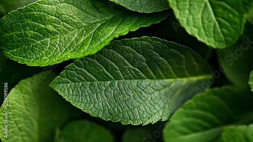 Close Up of Fresh Green Leaves Showcasing Rich Texture and Natural Beauty : Generative AI