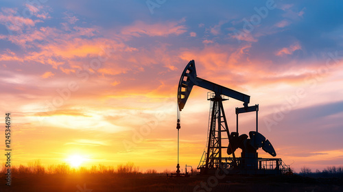 close up of oil drilling rig in action against vibrant sunset sky, showcasing industrial landscape